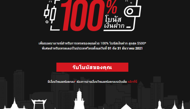 ห้ามพลาด 100% โบนัสเงินฝาก พิเศษสำหรับประเทศไทย สูงสุด $500 ในช่วงระหว่างวันที่ 1 – 31 ธันวาคม 2021