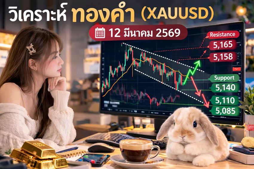 วิเคราะห์ ทองคำ (XAUUSD) 12 มีนาคม 2569 หลุดกรอบเมื่อไร มีสิทธิ์ไหลแรง แต่ถ้ายืนได้ยังมีลุ้นรีบาวด์