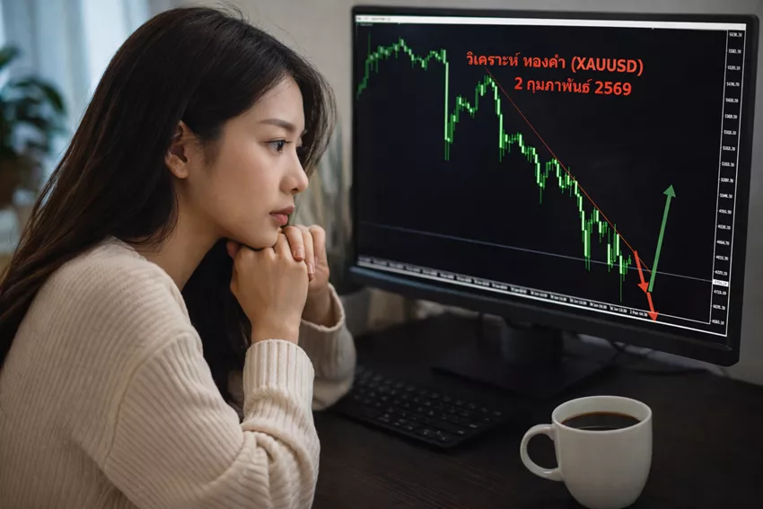 ภาพรวม XAU/USD วันที่ 2 กุมภาพันธ์ 2569 ยังอยู่ในโหมดขาลงตามโครงสร้างราคาเดิม แม้จะมีแรงเด้งระยะสั้น แต่ยังไม่ใช่สัญญาณกลับตัวที่ชัดเจน การเทรดที่เหมาะสมคือรอจังหวะยืนยันและเล่นตามเทรนด์หลักเป็นหลัก แนวรับ–แนวต้าน ยังเป็นเครื่องมือสำคัญในการวางแผน ขณะที่การบริหารความเสี่ยงคือหัวใจของการอยู่รอดในตลาดทองคำ สำหรับมือใหม่ การชะลอการตัดสินใจ รอความชัดเจน และตั้ง Stop Loss ทุกครั้ง จะช่วยลดความผิดพลาดได้มาก จำไว้ว่า “ไม่เข้าเทรด” ก็ถือเป็นการตัดสินใจที่ถูกต้องในวันที่ตลาดไม่ชัดเจน