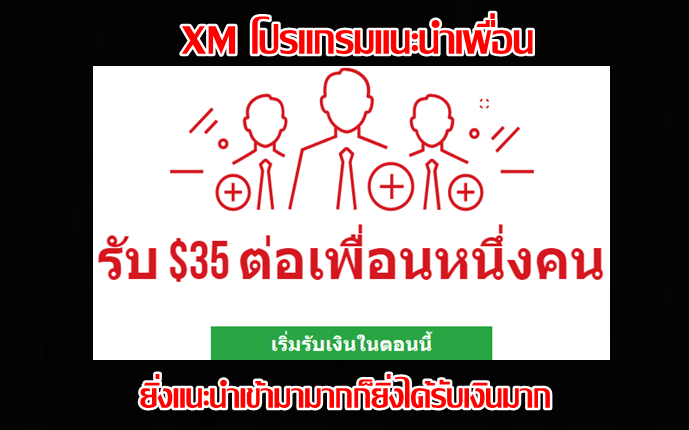 ชวนเพื่อนมาเริ่มต้น เทรดforex กับโบรกเกอร์ XM และรับสูงสุด $35* สำหรับเพื่อนแต่ละคนที่ท่านได้แนะนำเข้ามา ยิ่งแนะนำเพื่อนเข้ามามากเท่าใด ท่านก็ยิ่งจะได้รับเงินมากขึ้นเท่านั้น เริ่มรับเงินในตอนนี้ หากเพื่อนๆยังไม่ได้เปิดบัญชีจริง สามารถเปิดบัญชีจริง ที่นี่ได้เลย