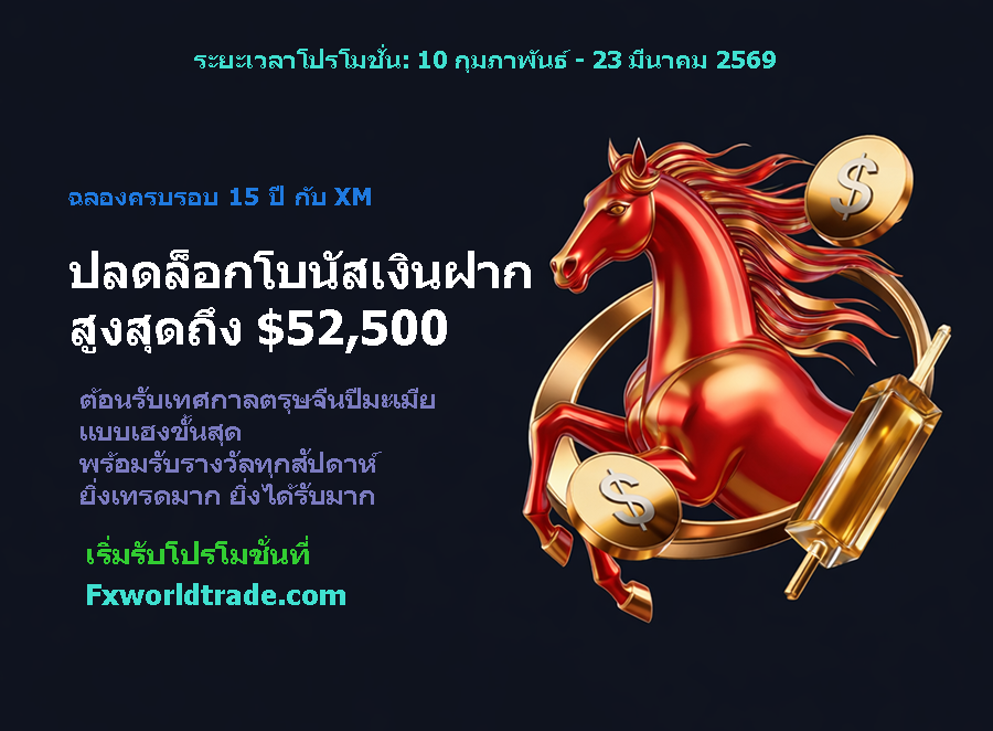 โบรกเกอร์ XM โปรแรงต้นปี โปรโมชั่นโบนัสเงินฝาก 2026 ฉลองครบรอบ 15 ปี รับสูงสุด $52,500 ต่อสัปดาห์ ยิ่งเทรดมาก ยิ่งได้มาก ต่อเนื่องถึงเทศกาลตรุษจีน 2026 ถือเป็นจังหวะทองของเทรดเดอร์ที่อยากเพิ่มเงินให้พอร์ต และ XM ก็จัดโปรโมชันใหญ่เพื่อฉลองโอกาสพิเศษนี้โดยเฉพาะ กับแคมเปญโบนัสเงินฝากแบบรายสัปดาห์ที่ยิ่งเทรดมาก ยิ่งมีสิทธิ์รับโบนัสมาก จุดเด่นคือสมัครเพียงครั้งเดียว แต่ใช้สิทธิ์ได้ต่อเนื่องทุกสัปดาห์ตลอดช่วงโปร ระบบคำนวณตามปริมาณการเทรดจริง ทำให้คุณเห็นเป้าหมายชัด วางแผนได้ง่าย และรู้ล่วงหน้าว่าสัปดาห์ถัดไปจะมีโอกาสรับโบนัสระดับไหน หากคุณกำลังมองหาโอกาสเพิ่ม Margin โดยไม่ต้องเพิ่มเงินทุนเต็มจำนวน นี่คือช่วงเวลาที่ไม่ควรพลาด คลิกลงทะเบียนวันนี้ แล้วเริ่มสะสมสิทธิ์ตั้งแต่สัปดาห์แรก เพื่อเปลี่ยนการเทรดธรรมดาให้กลายเป็นโอกาสรับโบนัสก้อนใหญ่ก่อนใครที่ xm.com